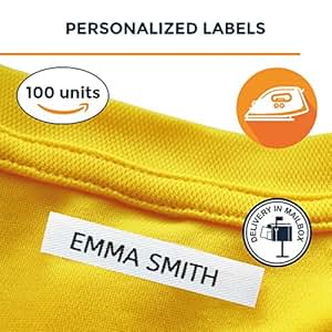 Amazon.com: Personalized Clothing Labels 100 Personalized Iron-on Fabric Labels to Mark Your Clothes. Gentle with Your Kids Skin, for Children's School Uniform / Clothes / Clothing Labels for Kids, Baby and Children. 3,137 $7 99 ($0.08/Count) Get it Thu, May 5 - Tue, May 10 $3.99 shipping Personalize it