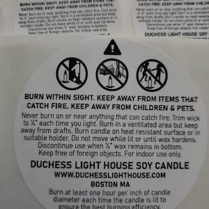 Understanding the Label - National Candle Association These graphic safety symbols are being seen on more and more candle labels worldwide. Learn to recognize these important visual reminders of the candle fire-safety rules. The NCA recommends candle manufacturers to use these files to create candle fire safety labels utilizing the ASTM F2058 Standard Specification for Candle Fire Safety Labeling, which is available at . Candle manufacturers may follow the links below to download EPS (high resolution), JPEG, or PDF versions of the ... Amazon.com: candle warning labels 1500 Pcs Candle Warning Labels, 1.5 Inch Round Candle Safety Labels Sticker Candle Jar Container Stickers Candle Labels Warning Sticker for Candle Making DIY Candle Jars (White) -11%$799 ($2.66/Count) $8.99. Save 5% with coupon. Get it as soon as Wed, Jul 27. FREE Shipping on orders over $25 shipped by Amazon. Candle Warning & Safety Labels - Free Templates - Pinterest 2" Round Candle Warning Labels Candle Making Supplies Free Shipping. Diy Candles Video. Organic Candles. Diy Candle Holders. Essential Oil Candles. Learn an algorithm to ensure you fast-track your candle designs so they pass every burn test and behave in a predictable way, even if you're using new materials. #candlemaking #candlediy.