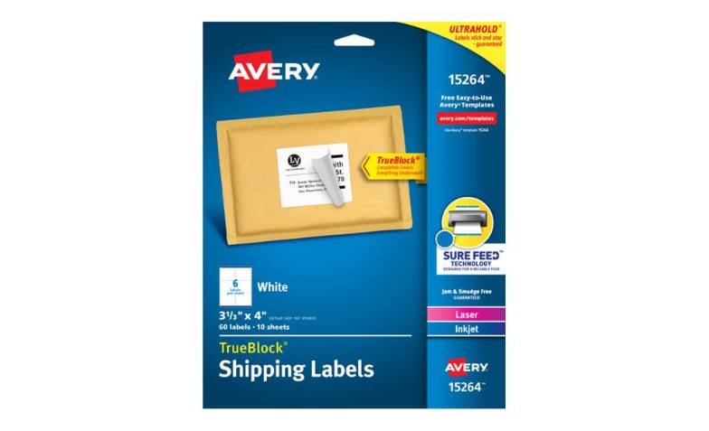 Avery® Shipping Labels w/ Paper Receipts, TrueBlock® Technology, Permanent Adhesive, 5-1/16" x 7-5/8", 50 Labels (5127)