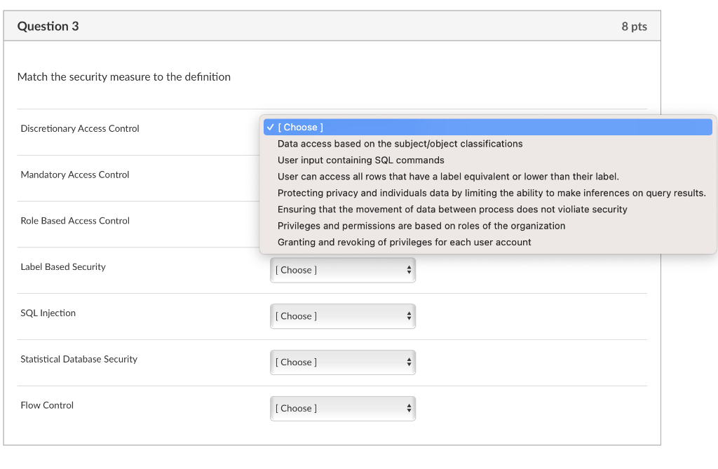 Security labels access control. Define access control list and capability list and compare them ... An access control list (ACL) is a table that tells a computer operating system which access rights each user has to a particular system object, such as a file directory or individual file. Each object has a security attribute that identifies its access control list. The list has an entry for each system user with access privileges. Controlling Access to the Kubernetes API | Kubernetes Web09.07.2022 · This page provides an overview of controlling access to the Kubernetes API. Users access the Kubernetes API using kubectl, client libraries, or by making REST requests. Both human users and Kubernetes service accounts can be authorized for API access. When a request reaches the API, it goes through several stages, illustrated in … Security Labels and Mandatory Access Control (MAC) - IBM Mandatory Access Control (MAC) is a security policy that governs which subjects can access which objects, and in what way, based upon certain rules. Label Security | Oracle Oracle Label Security records and enforces access permission for data based on project codes, regions, or data classifications. These controls reduce the risk of unauthorized access to sensitive data and help to demonstrate regulatory compliance. Learn more about Oracle Database security. Watch the overview video (8:16)